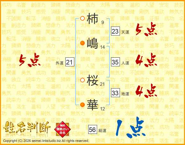 柿(9画)嶋(14画) 桜(21画)華(12画)