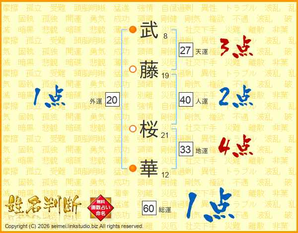武藤桜華さんの人運は40画の2点!