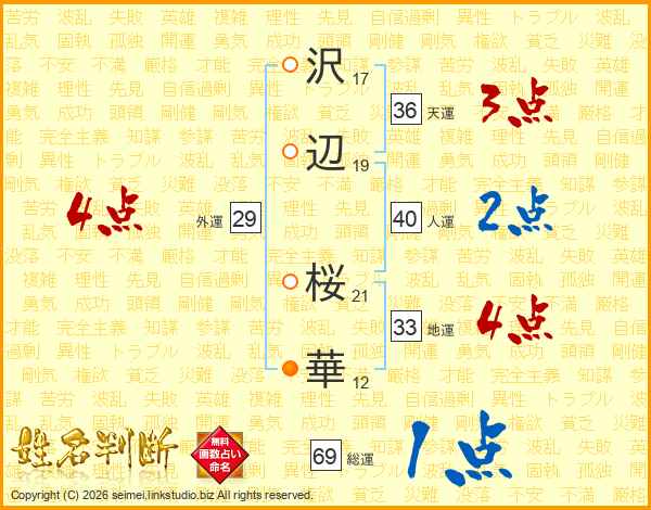 沢辺桜華さんの人運は40画の2点!