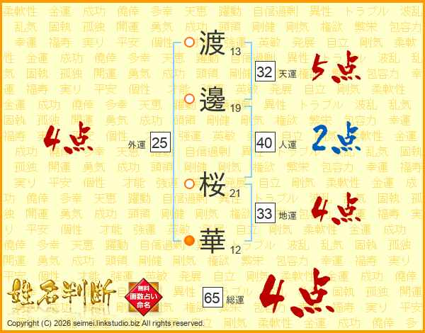 渡邊桜華さんの天運は32画の5点!