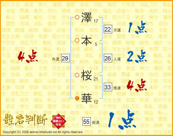 澤本桜華さんの総運は55画の1点!