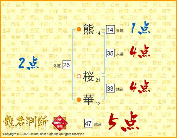 熊桜華さんの総運は47画の5点!