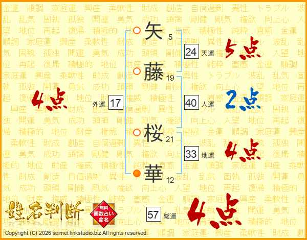 矢藤桜華さんの天運は24画の5点!