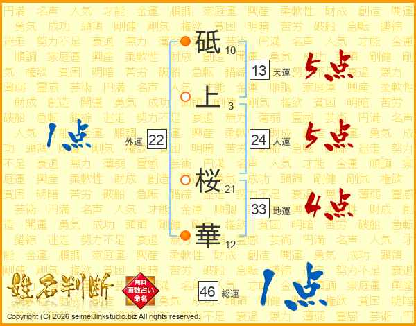 砥上桜華さんの人運は24画の5点!