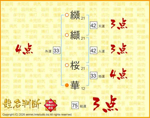 纐纈桜華さんの外運は33画の4点!