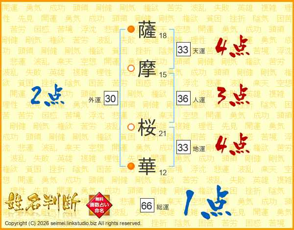 薩摩桜華さんの総運は66画の1点!