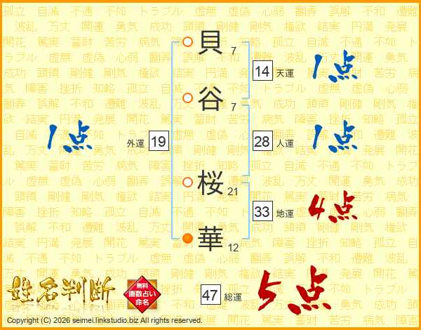 貝谷桜華さんの総運は47画の5点!