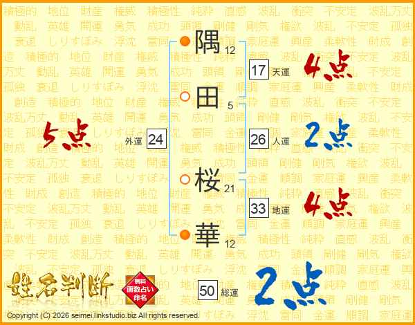 隅田桜華さんの外運は24画の5点!