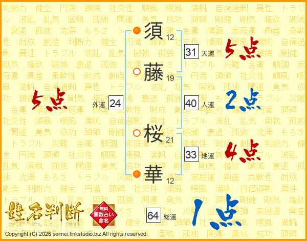 須藤桜華さんの天運は31画の5点!