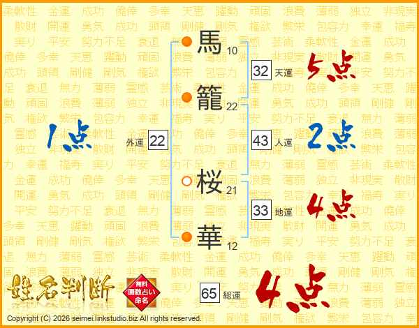 馬籠桜華さんの総運は65画の4点!