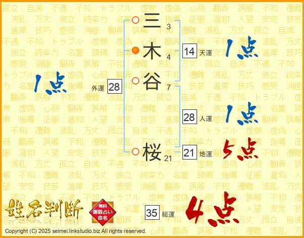 三木谷桜さんの外運は28画の1点!