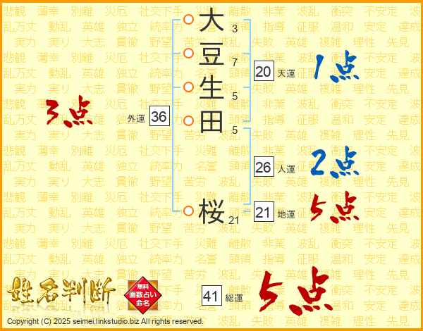大(3画)豆(7画)生(5画)田(5画) 桜(21画)
