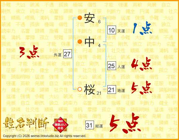 安中桜さんの総運は31画の5点!