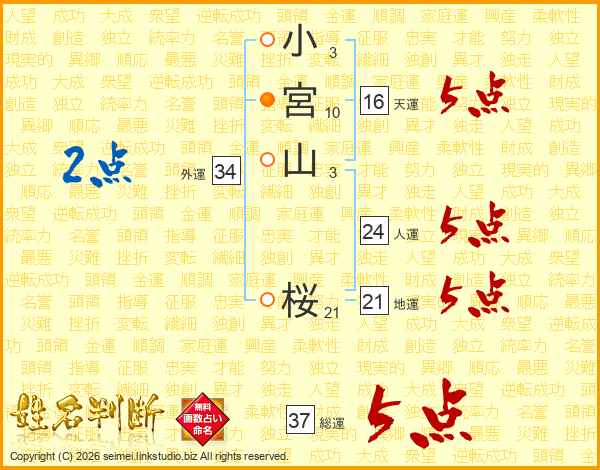 小宮山桜さんの総運は37画の5点!