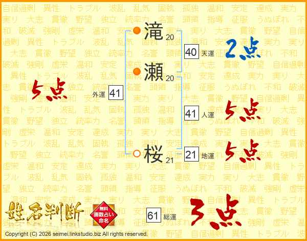 滝瀬桜さんの外運は41画の5点!