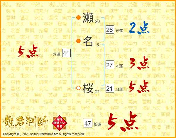 瀬名桜さんの総運は47画の5点!