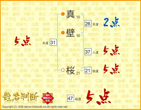 真壁桜さんの総運は47画の5点!