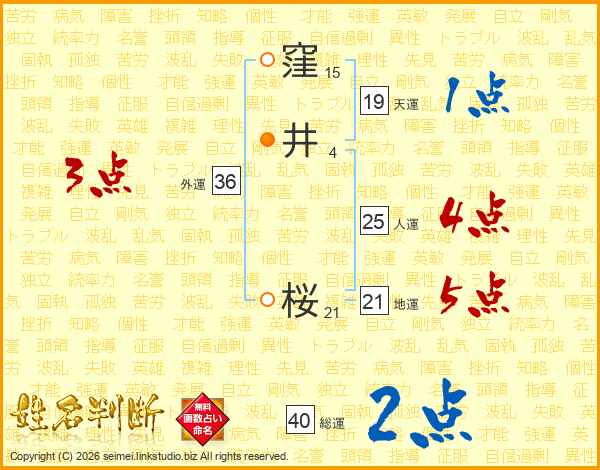 窪井桜さんの人運は25画の4点!