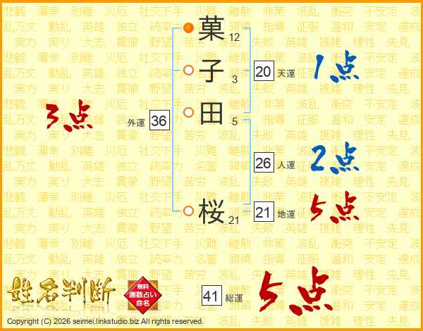 菓子田桜さんの総運は41画の5点!