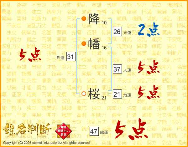 降幡桜さんの総運は47画の5点!
