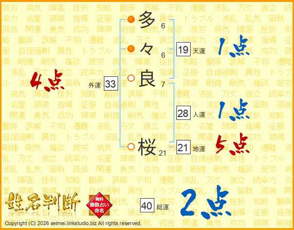 多々良桜さんの天運は19画の1点!