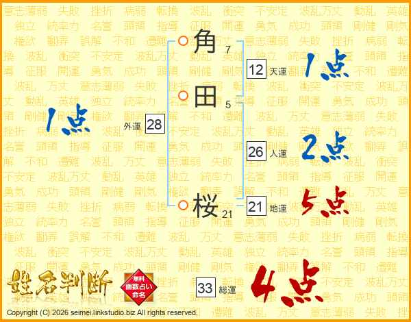 角田桜さんの総運は33画の4点!