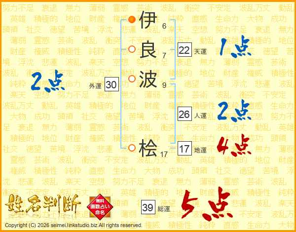 伊良波桧さんの総運は39画の5点!