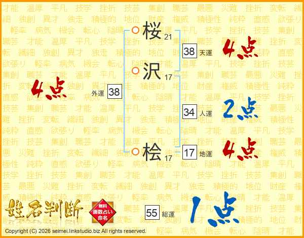 桜沢桧さんの総運は55画の1点!