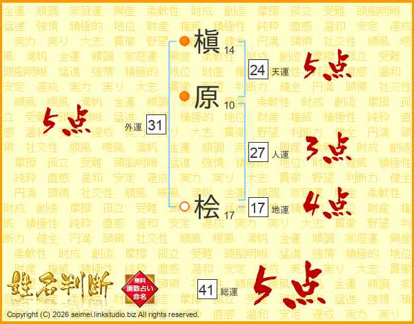 槇原桧さんの総運は41画の5点!