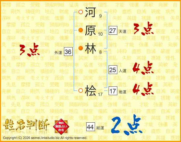 河原林桧さんの総運は44画の2点!