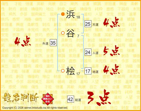 浜谷桧さんの外運は35画の4点!