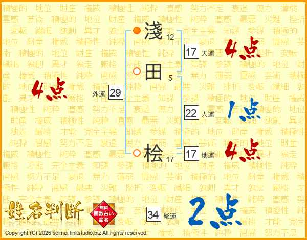 淺田桧さんの総運は34画の2点!