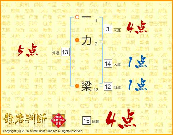 一力梁さんの総運は15画の4点!