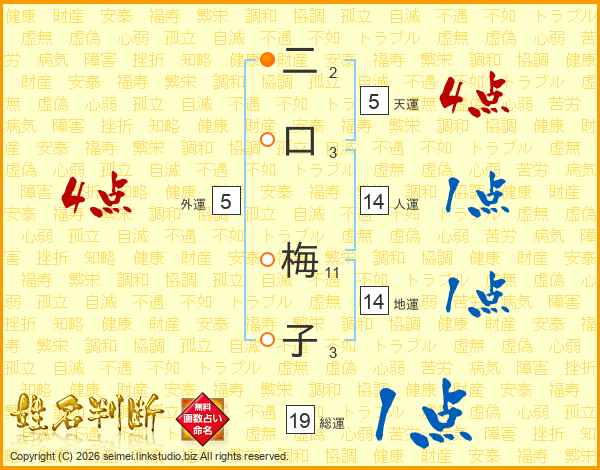 二口梅子さんの総運は19画の1点!
