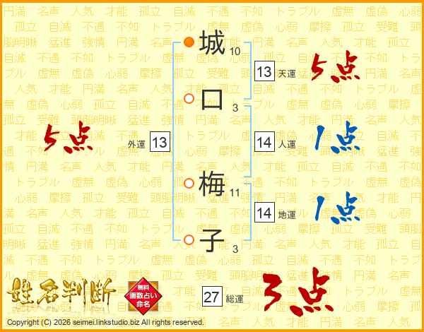 城口梅子さんの総運は27画の3点!