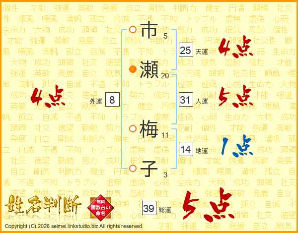 市(5画)瀬(20画) 梅(11画)子(3画)