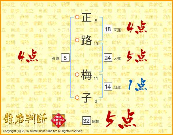 正路梅子さんの総運は32画の5点!