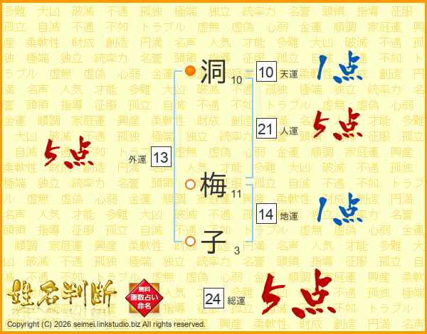 洞梅子さんの総運は24画の5点!