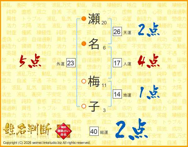 瀬名梅子さんの天運は26画の2点!