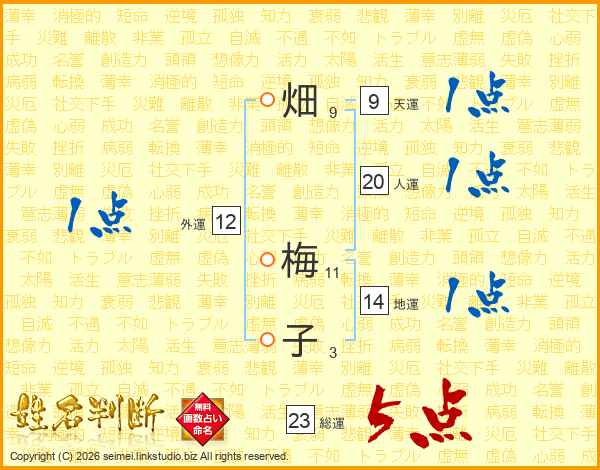 畑梅子さんの総運は23画の5点!