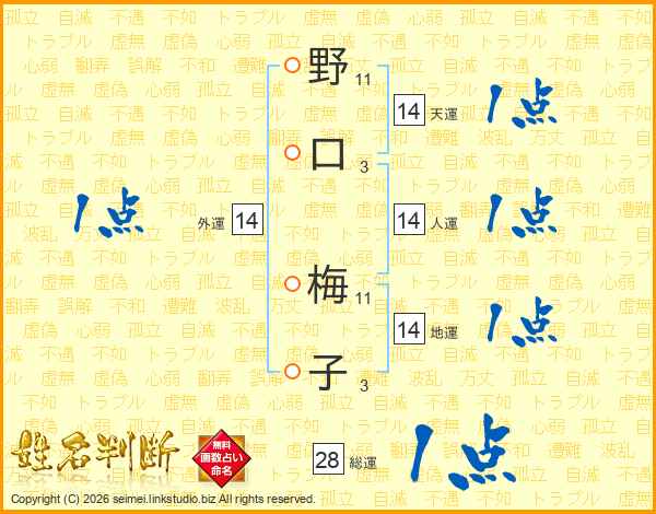 野口梅子さんの外運は14画の1点!
