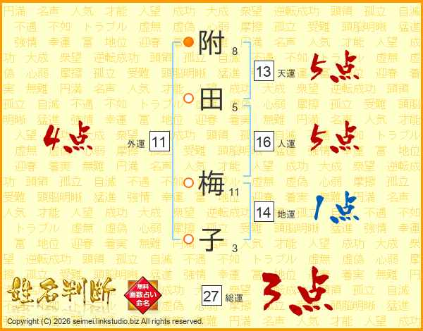附田梅子さんの総運は27画の3点!