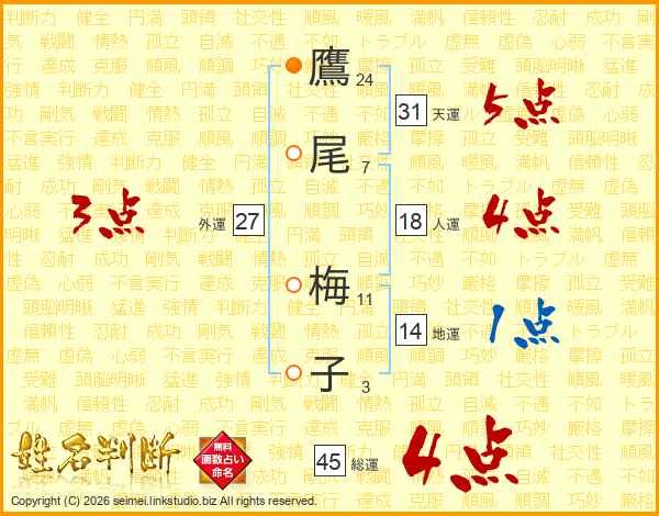 鷹尾梅子さんの総運は45画の4点!