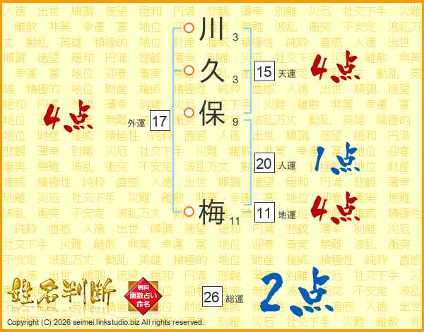 川久保梅さんの総運は26画の2点!