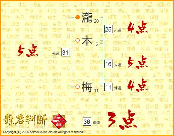 瀧本梅さんの総運は36画の3点!