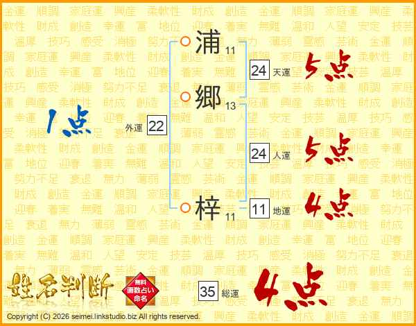 浦(11画)郷(13画) 梓(11画)