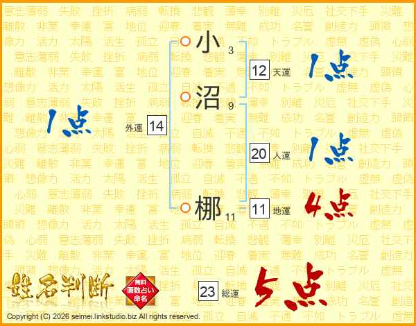 小沼梛さんの総運は23画の5点!