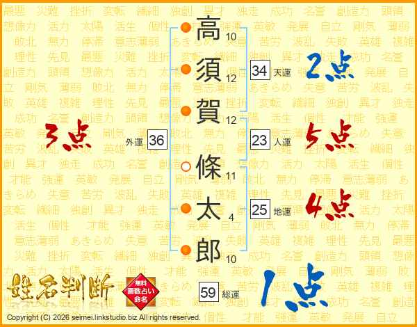 高(10画)須(12画)賀(12画) 條(11画)太(4画)郎(10画)
