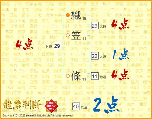織笠條さんの総運は40画の2点!