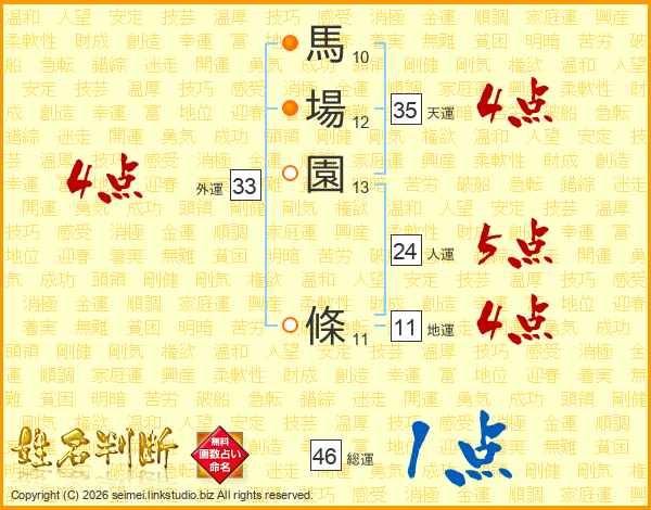 馬場園條さんの総運は46画の1点!